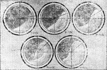 如果磨機的轉速不高,全部球荷向上偏轉一定角度,其中每個鋼球都繞自己的軸線轉動。當球荷的傾斜角超過鋼球在球荷表面上的自然休止角時,鋼球即沿此斜坡滾下。鋼球的這種運動狀態,叫做瀉落,如圖3-1-2中的(a)。在瀉落式工作的磨機中,礦料在鋼球間受到磨剝作用。如果磨機的轉速足夠高,鋼球自轉著隨筒體內壁作圓曲線運動上升至一定高度,然后紛紛作拋物線下落。鋼球落下的地方,叫底腳區,其中的鋼球強烈地翻滾。這種運動狀況,如圖3-2-1中的(b),叫做拋落。在拋落式工作的磨機中,礦料在圓曲線運動區受到鋼球的磨剝作用,在底腳區受到落下的鋼球的沖擊和強烈翻滾著的鋼球的磨剝。倘若磨機的轉速高到超過某一臨界值,鋼球就貼在襯板上不再落下。這種狀態叫離心運轉,知圖3-2-1中的(c)。發生離心運轉時,礦料也是貼著襯板的。以上這些情形,都是指磨機內裝有一定數量的鋼球說的。要是磨機內只有少量的球,它們只是在磨機內較低點擺動,并不發生上面講的三種情況。用拍攝磨機內的介質的運動狀態來研究它的運動規律,本世紀的二十年代已經開始,豪爾太恩、戴維斯、列文遜和我國的王仁東,都先后做過這方面的工作。鋼球作瀉落式運動的力學尚缺乏研究,以后只講拋落式的。再詳細地看看下面幾張關于拋落式和離心運轉的照片。