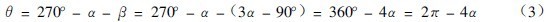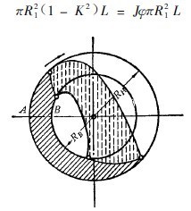 再從全部球荷來看,如圖3-2-13,在磨機轉一周的時間內,沿圓形軌跡經過斷面AB的球的體積為