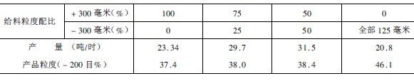 表1給料粒度配比對自磨機產量、產品粒度的影響