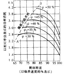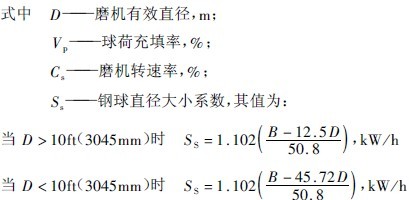 由公式(5-40)和&5=Ss值看出,每噸大球的輸入功率比小球的大。筆者的工業試驗證實,球徑減小后磨機功率可下降2%~3%。