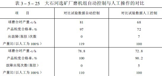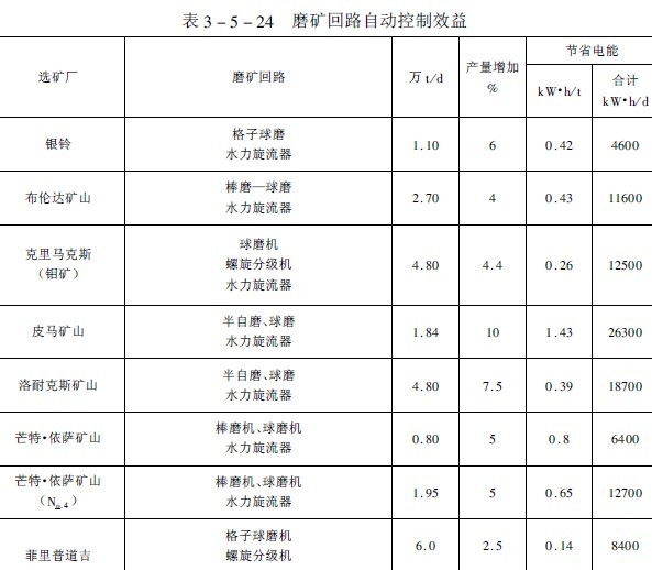 據國外報導磨礦回路自動控制可提高產量2.5~10%處理一噸礦石可節省電能0.4~1.4千瓦·時(見表3-5-24)。