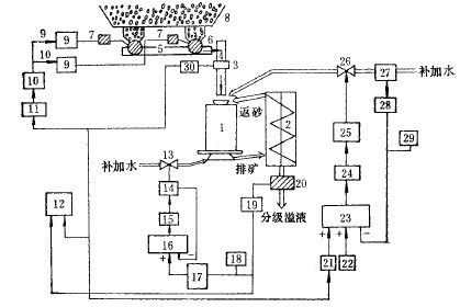 3)根據濃度計測量分級機溢流濃度,調節分級機補加水,以調節分級溢流濃度的閉環控制。