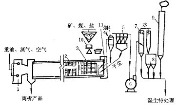 根據(jù)焙燒階段物料處理方法的不同,離析法分為“一段離析”和“兩段離析”兩種類型。一段離析法是將礦石、食鹽及還原劑混合后一并進入焙燒爐內(nèi)(大部分采用臥式回轉(zhuǎn)窯),物料的加熱和離析都在同一設(shè)備中進行。兩段離析法又稱“托爾科”法,是先將礦石預(yù)熱至反應(yīng)溫度,然后混入適量的食鹽和還原劑進入離析反應(yīng)器內(nèi)離析?,F(xiàn)在的生產(chǎn)表明,兩種離析法都能達到較高的選別指標(biāo)。