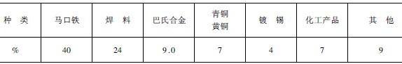 據統計,目前錫的主要用途和所占比例列于表1。