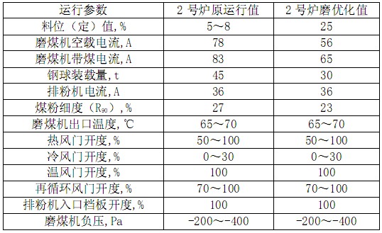 表1 制粉系統優化運行參數